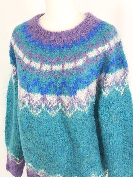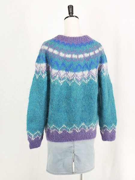 Ladies ブランド カラー青・紫 メール便不可 コンディション★★★ 素材モヘア・ウール・ナイロン 表記サイズM 実寸サイズ 着丈 65 cm 身幅 55 cm 袖丈 69 cm ※ウエスト・ヒップ以外は平置き採寸【code】#c
