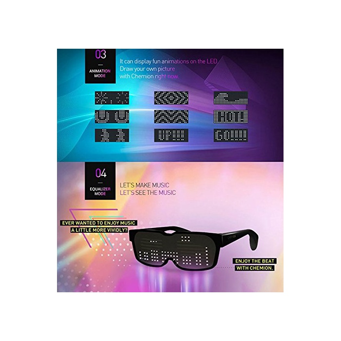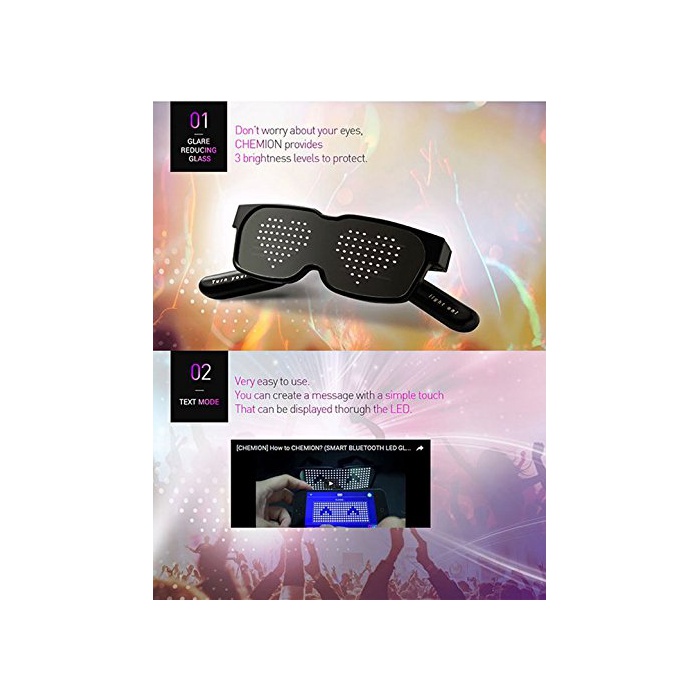 CHEMION 2 스마트 글래스 Smart Bluetooth LED,Couple Sunglasses, Club, Party, Sports Glasses[병행수입품]