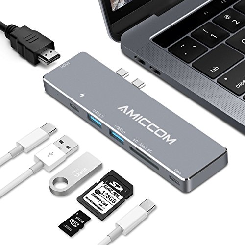 -. Feature : HIGHLY FUNCTIONAL DESIGN: This Aluminum Type-C Pro Hub is one of the most feature rich MacBook USB hubs in the market. It works with 13" and 15" 2016/2017 MacBooks and adds 4K resolution HDMI port, 2 USB 3.0 ports, thunderbolt 3 charging port, and SD/Micro card readers. / SIMPLE PLUG-N-PLAY FUNCTIONALITY: Our type-C hub adapter does not require any complex software or driver installations to work. Just plug it in and you are good to go. We offer true simplicity for your comfort. / ULTRA-FAST DATA TRANSMISSION SPEEDS: Experience the fastest read/write speeds with our USB-C hub for MacBook. It supports C6 card reading 11-16m/s, writing 6-8m/s and C10 card reading 17-26m/s, writes 12-18m/s with a fascinating transmission speed of 40 GB/s Thunderbolt. / PERFECT COMPLEMENT FOR YOUR MACBOOK: They slim and compact design or our type-C USB hub makes it the best accessory for your apple laptop. It is also available in space gray and silver to further complement the look of your MacBook / 100% MONEY BACK GUARANTEE: We are confident about the quality of our USB hub, and can confidently back it up with a complete money back guarantee. If not happy about it, get in touch with us and get a full refund. Click 'Add to Cart' now!