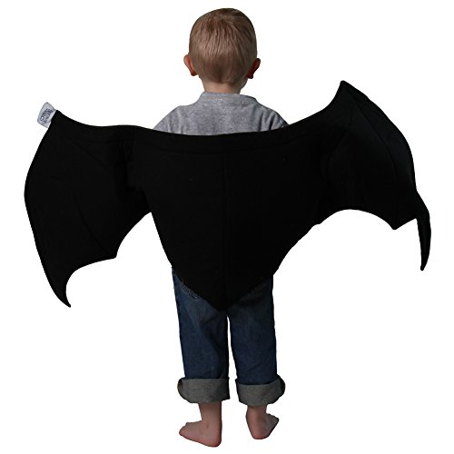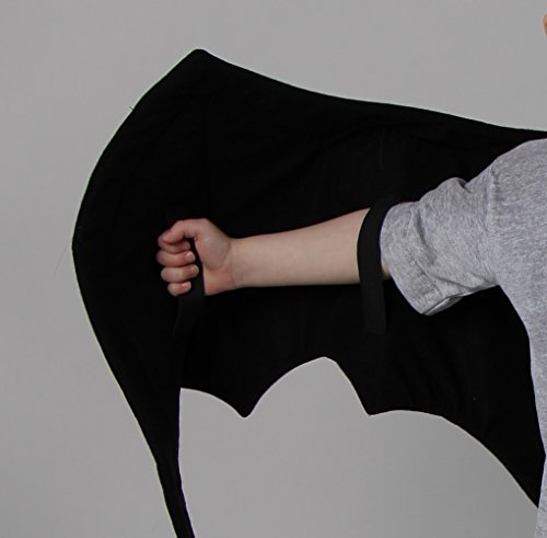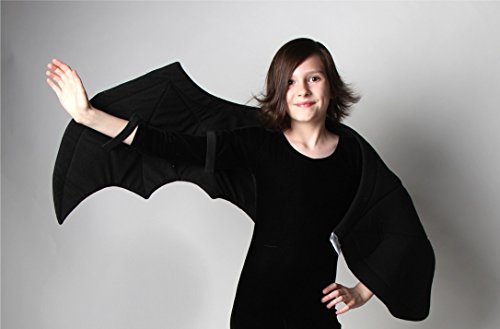 Black bat or dragon wings. Also great for superheroes, gothic costumes, and vampires. Perfect Halloween accessory or dress up and pretend play item. Let a child's imagination soar with this simple play accessory that will provide hours of fun. Each wing has two soft elastic bands to pull arms through so your little one can flap about. Solid black brushed polyester fabric. Surface washable with a damp cloth as needed. Polyester. Imported.Feature