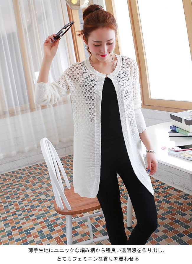 カーディガン レディース 長袖 丸襟 薄手 ニットカーディガン 女性用 ライトアウター 春秋物 ゆったり クーラー対策 夏物 アウターレディース用のニットカーディガンが登場薄手生地にユニックな編み柄から程良い透明感を作り出し、とてもフェミニンな香りを漂わせる季節転換の時期にピッタリ、気軽に羽織だけでコーデを完成室内のクーラー対策にも効き、幅広い場合で着こなせる一枚ヒップ丈に白の色チョイスで手持ちのアイテムとは簡単に組み合わせられるカラー:写真色素材 ポリエステルサイズ(cm) FF 着丈72 肩幅52ご注意:※サイズは平置きサイズです。素人採寸ですので、若干の誤差がございます、ご了承ください。