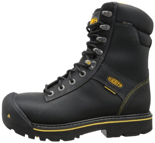 -. Feature : Waterproof work boot in leather with protective steel toe, metal lace hardware, and cushioned collar / KEEN.Welt construction / Electrical hazard (EH) / Removable dual-density EVA foam footbed / Waterproof and breathable KEEN.DRY membrane / Thick oil- and slip-resistant lug sole / Meets or exceeds ASTM F2412-11 and F2413-11 I/75 C/75 EH standards