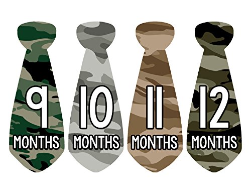 Months in Motion 765 Monthly Baby Stickers Necktie Tie Baby Boy Months 1-12 Camo Camouflage
