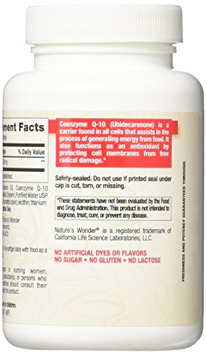 Nature's Wonder CoQ10 200mg.Coenzyme Q-10 (Ubidecarenone) is a carrier found in all cells that assists in the process of generating energy from food. It also functions as an antioxidant by protecting cell membranes from free radical damage.