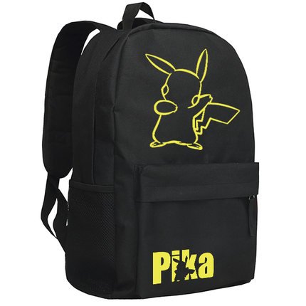 Title : Smiling Face Pikachu Printing Canvas School Backpacks for Teenagers (Black)