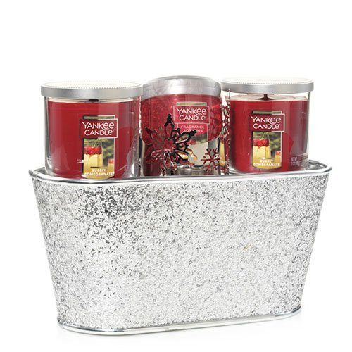 Yankee Candle Glitter Silver Shimmer Tin Gift Set BUBBLY POMEGRANATE