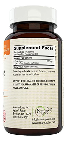 EXTRA STRONG FORMULA: Nature’s Potent L-Carnitine supplement gives you 500 mg of an essential amino acid that will help strengthen and energize your body as well as improve your general well-being.