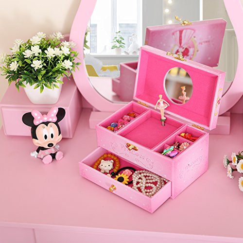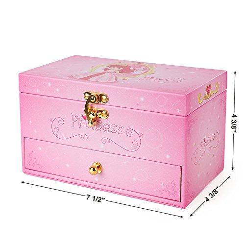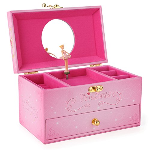 SONGMICS Girls Ballerina Musical Jewelry Box Faux Leather Music Box with Drawer, Pink Princess UJMC12P