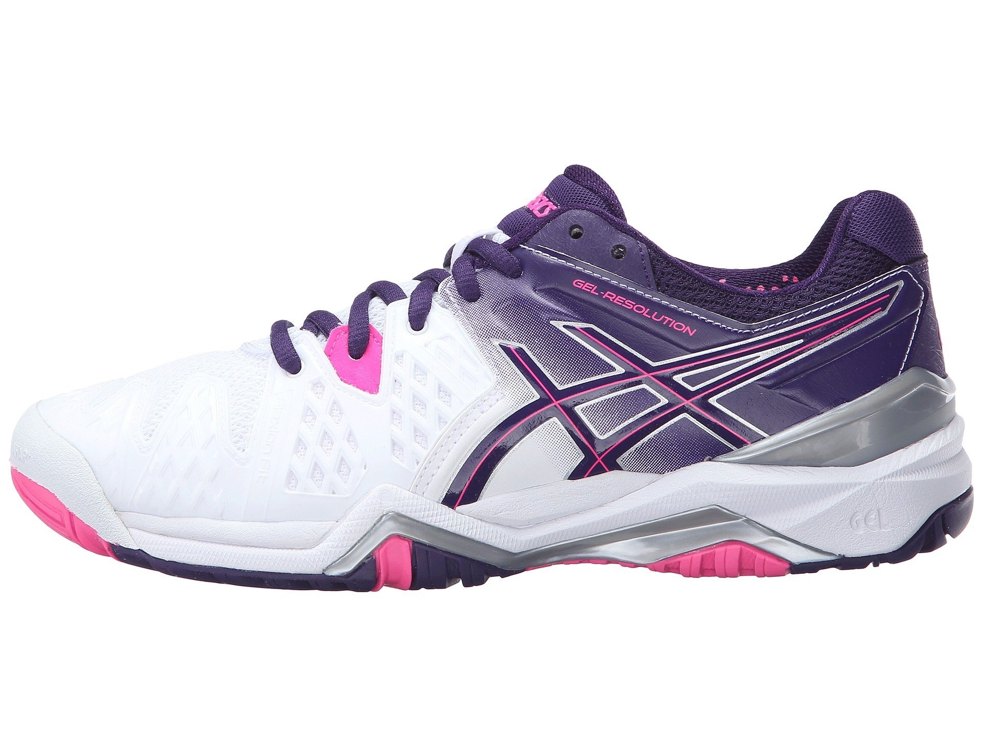 | Product Information SKU: #8437636Another long afternoon perfecting your backhand is more than enough to leave even a top-notch athlete drained. Keep soles feeling resilient in the ASICS? GEL-Resolution? 6 tennis shoe!Part of the ASICS tennis stability line.Breathable mesh and synthetic upper materials. Proprietary Flexion Fit? upper provides snug, form-fitting comfort without compromising support. PGuard Toe Protector for enhanced durability.External heel counter with an emphasis on mid-foot support and stability. Plush tongue and collar.P.H.F. (Personal Heel Fit) employs two layers of memory foam in the collar that mold to your foot for a personalized fit and feel.Breathable fabric lining offers a great in-shoe feel.Removable molded foam footbed.Multi-sport I.G.S? (Impact Guidance System) is based on linked, sport-specific componentry that heightens the foot's natural gait.Solyte? midsole material is lighter than standard EVA and SpEVA?, and provides lasting durability and cushioned comfort.Rear and Forefoot GEL? cushioning systems attenuate impacting shock, and allow movement in multiple planes.FluidRide in the mid and forefoot for plush underfoot comfort. Strategically-placed AHAR+? Plus (ASICS High Abrasion Rubber) outsole material delivers long-lasting wear.Lateral Propulsion Trusstic System? reduces overall weight of the sole without compromising structural integrity.Imported. Product measurements were taken using size 10, width B - Medium. Please note that measurements may vary by size.Weight of footwear is based on a single item, not a pair.Measurements: Weight: 13 oz |