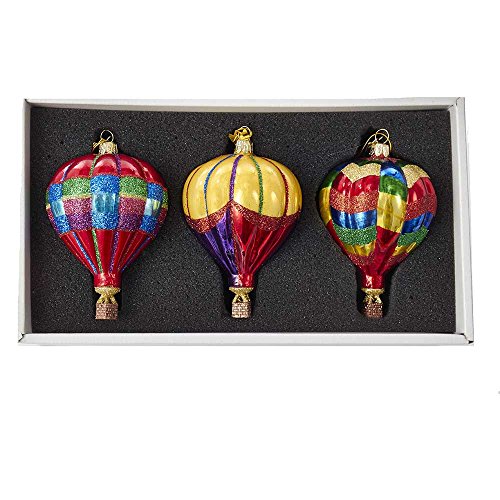 Kurt Adler 3.5-Inch Noble Gems Glass Hot Air Balloon 3-Piece Ornament Set