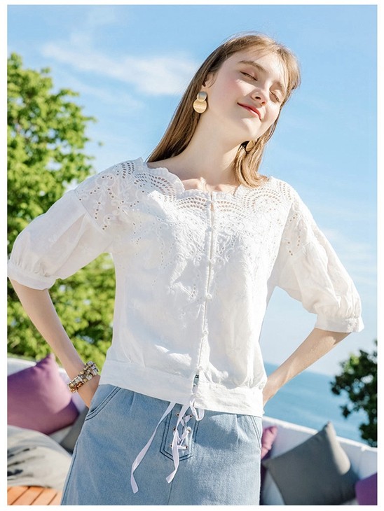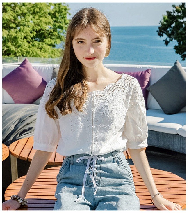 【製品仕様】■商品名半袖レースブラウス シャツ ブラウス レディース 半袖 レース 夏 トップス■商品説明上品なレース地の白ブラウス。キャミソール付きだから透ける心配もなし。カジュアルにもエレガントにも使える、着回し力抜群の一枚。■サイズ/寸法S M L■素材/材質コットン ポリエステル(裏地)■色/カラーホワイト