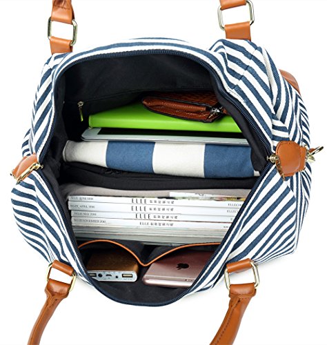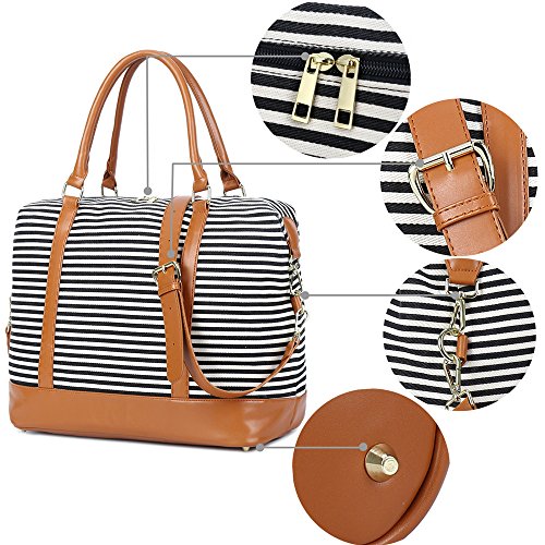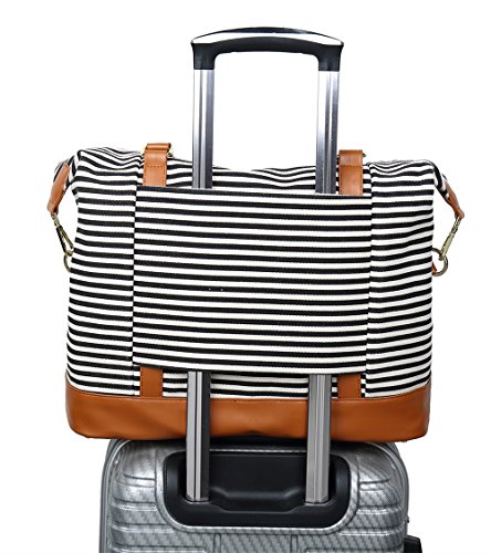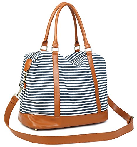 Weekender Overnight Travel Bag PU Leather Trim Canvas Carry On Duffel Tote Bags Features - Fashion canvas duffel bag perfect for everyday use, with all your daily bits. -This cool ladies women travel bag works well with a variety of different outfits and casual styles. - A great Christmas gift choice, general use for men and women unisex. - Fashion vintage design weekend or overnight trip, two-days business travel, short journey Washing instructions - Hand wash with cold water. - Hang to dry. - Washing separately to avoid staining. Package includes -1 x weekend travel bag - 1 x Adjustable PU Leather strap REMARKS -The actual color of the bag maybe different from the picture shown due to the different screen of display or reflecting light when shooting. - Due to different measurement methods, may be 1-2cm error of measuring - Please do not put the bag exposed to the sun for a long time. - Since the duffel bag with genuine leather, would you please put the bag in the dry and ventilated place.