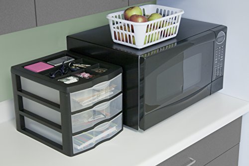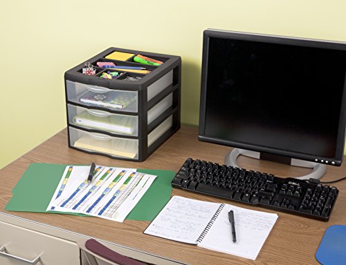 Sterilite 20439002 Medium 3 Drawer Desktop Unit, Black with Clear Drawers, 2-Pack