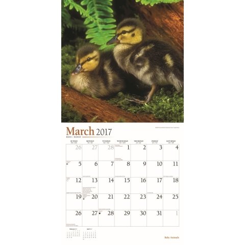 -. Binding : Office Product -. Brand : 2017 Calendars -. EAN : 0705911297135 -. Feature : 2017 Calendar featuring beautiful images for every month of the year. / Includes Holidays and Observances. / Keep your appointments and Birthdays organized in one place! / Perfect for office spaces, bedrooms, classrooms and more! / Makes a great gift for friends and family! -. Label : Brown Trout -. Manufacturer : Brown Trout -. MPN : 57938 -. PackageQuantity : 1 -. PartNumber : 57938 -. ProductGroup : Office Product -. ProductTypeName : OFFICE_PRODUCTS -. Publisher : Brown Trout -. Studio : Brown Trout -. Title : 2017 Baby Animals Calendar - 12 x 12 Wall Calendar -. UPC : 705911297135