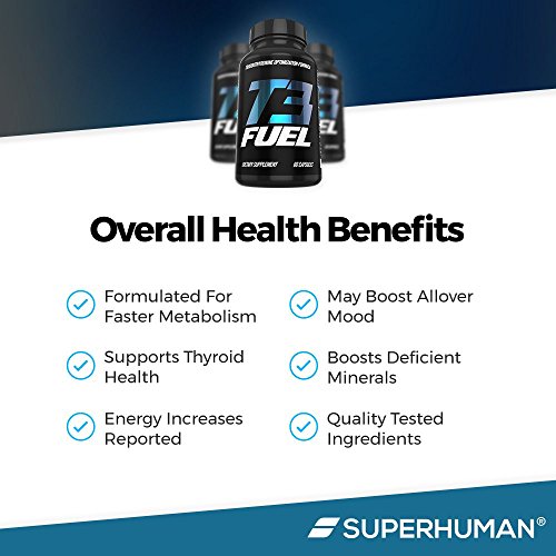 -. Binding : Health and Beauty -. Brand : Superhuman -. EAN : 0632181494677 -. Feature : MAY BOOST METABOLISM: Formulated to improve mitochondrial function for a natural energy boost and metabolic support at a cellular level. / FORMULATED FOR THYROID HEALTH: Contains the raw ingredients to help boost vital thyroid hormones T3 (iodine and tyrosine) and T4 (selenium). / PROMOTES WEIGHT LOSS: Naturally boosting thyroid levels help cells to burn more energy, and in effect, can help us lose fat faster / IMPROVES OVERALL WELL-BEING: Often missing from our diets, zinc & magnesium can boost energy and mood. / COMMITTED TO QUALITY: Every raw material is tested for purity and potency before making it into our dietary supplements -. IsAdultProduct : 0 -. Label : Superhuman -. Manufacturer : Superhuman -. MPN : SH-T3-Fuel -. PackageQuantity : 1 -. PartNumber : SH-T3-Fuel -. ProductGroup : Health and Beauty -. ProductTypeName : HEALTH_PERSONAL_CARE -. Publisher : Superhuman -. Studio : Superhuman -. Title : Thyroid Support Supplement with Iodine & Resveratrol - T3 Fuel - Increase Metabolism Naturally - Promotes Weight Loss - Improve Mood & Energy - 30-Day Supply (60 Count) -. UPC : 632181494677