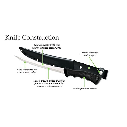 SOFT RUBBER GRIP – The grip on the fillet knife is made from black rubber and feels great in your hand. It is designed to be non-slip so you can safely use this knife, even in the wettest environments.