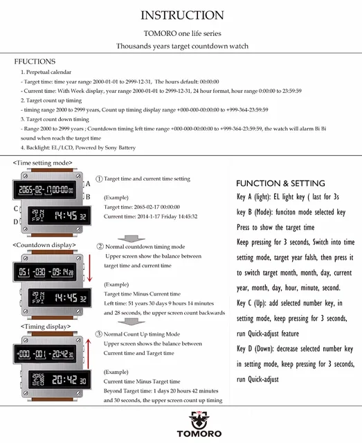 - 특징: 뒤 빛,물 저항하는,달력을 완료하십시오,다수 시간대,영구 캘린더,자동 날짜,발광 다이오드 표시