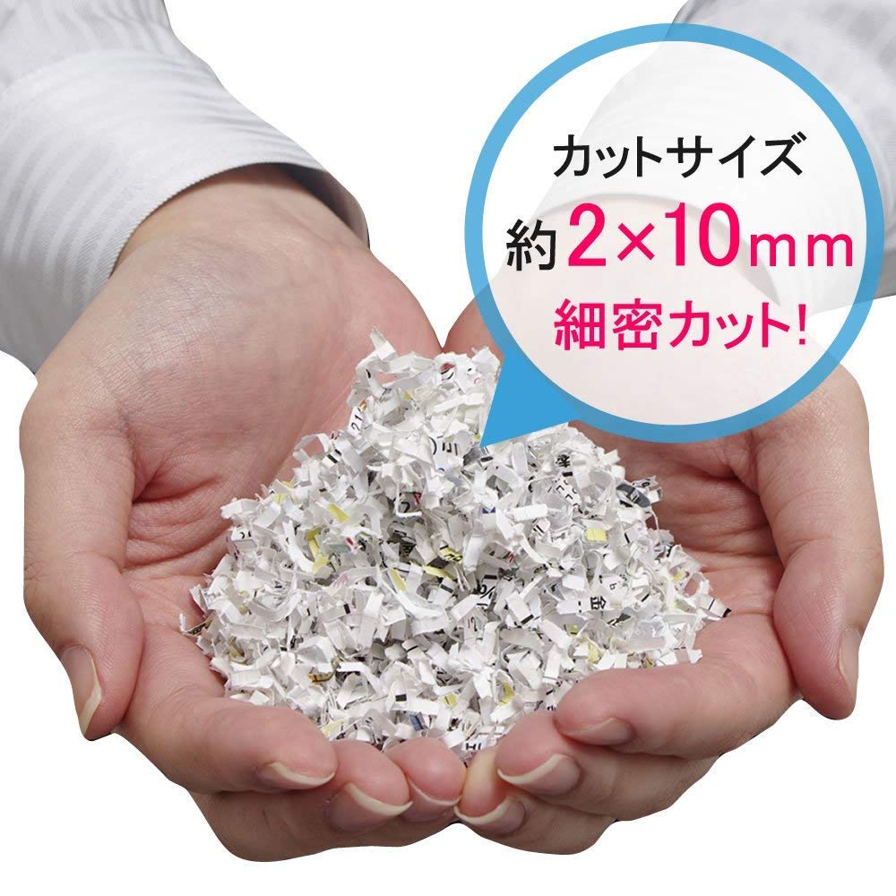 【特徴】マイクロカット・メディアカットが可能で静音かつデザイン性が高い当社NO.1のパーソナルシュレッダー.A4コピー用紙5枚を一度に細断でき,カットサイズは約2×10㎜と細かく細断し,外部に漏らしたくない情報を守る.またインテリアにも合う高級感を取り入れたシュレッダー.