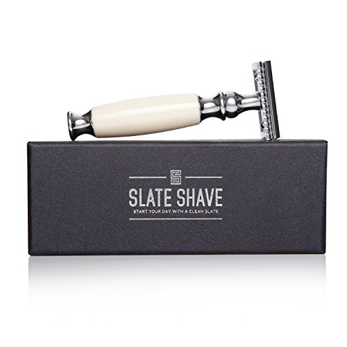 Slate Shave Double Edge Safety Razor with Faux Ivory Handle