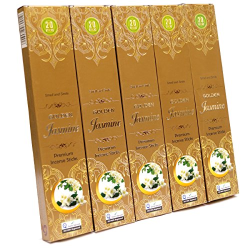 Total No. of Sticks: 100, Weight: About 140 gms.; Made of the superior quality bamboo sticks and essential oils extracted from the fresh jasmine flowers, | Style is hand-rolled which helps produce best quality incense sticks
