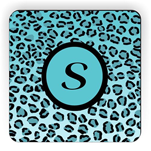 Rikki Knight Letter "S" Initial Sky Blue Leopard Print Monogrammed Design Square Fridge Magnet