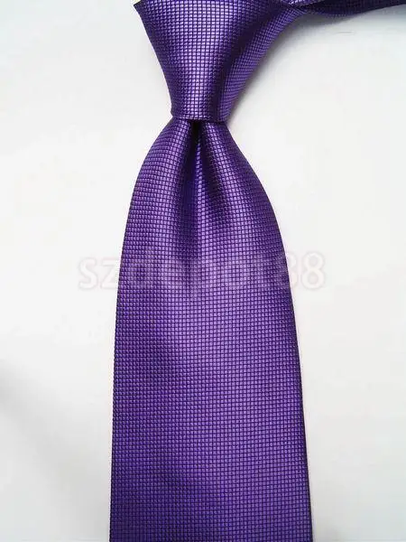 | [해외]새로운 2014 브랜드 새로운 고전적인 순수한 컬러 10 센치메터 자카드 짠 미세 격자 남성 넥타이 넥타이 보라색 새로운 무료 배송 |