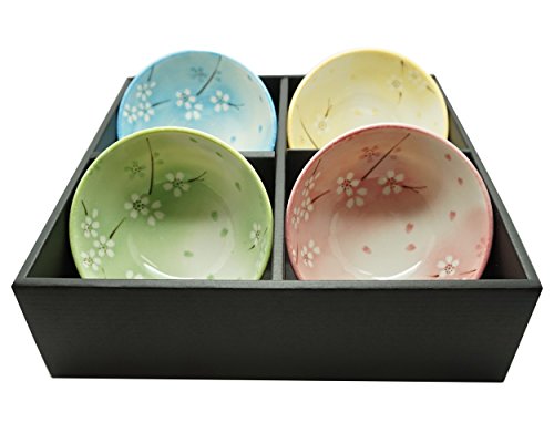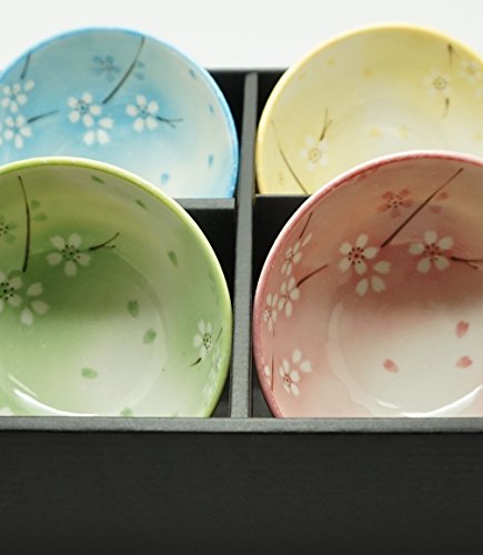 - Assorted 4 color rice bowl set light blue,light pink,light green and pearl. Each colors symbolizes the four season winter spring summer and autumn. The natural beauty of the cherry blossom differs as each season changes.