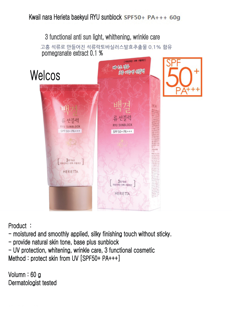 Kwail nara Herieta Ryu sunblock,SPF50+ PA+++,UV,wrinkle care,whitening