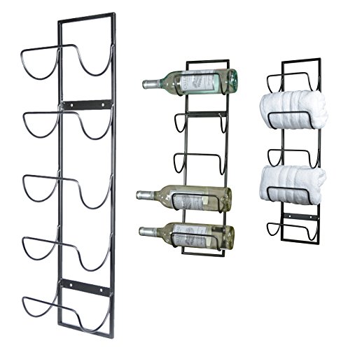 - 5 Bottle Wall Mounted Metal Wine Rack, Towel Rack