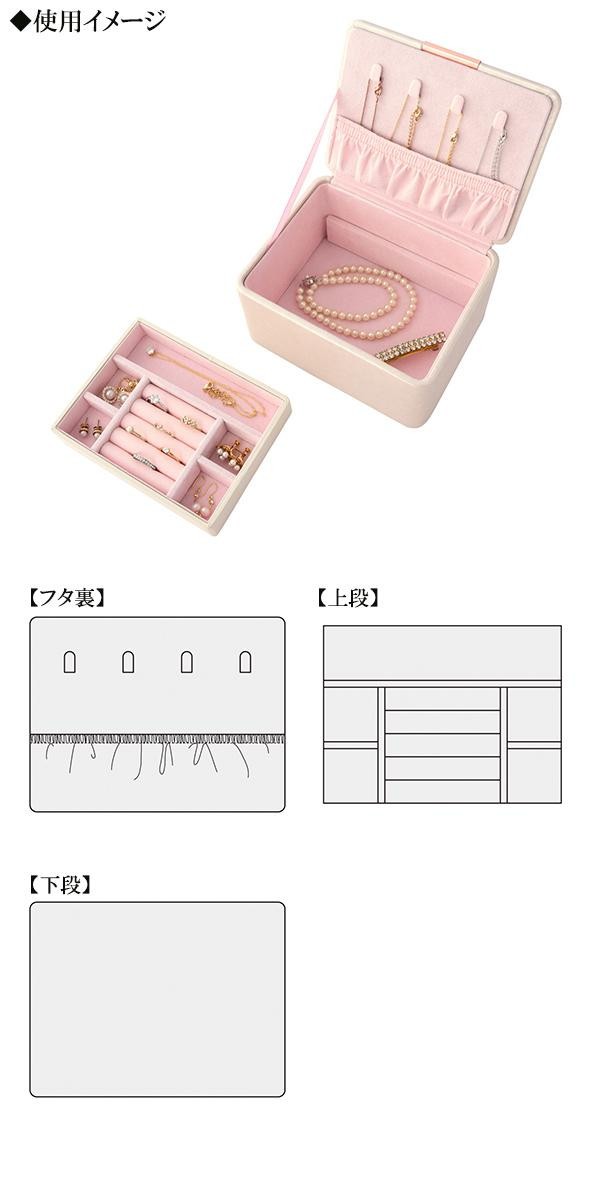 フェイクレザーが高級感を演出し、ピンクのベルベットの内生地はアクセサリーをやさしく守りつつ可愛らしさを際立てます。