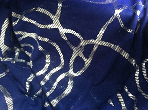 Mesh Stretch Fabric Royal with Silver Design ~ 3 Yds~ 58 "