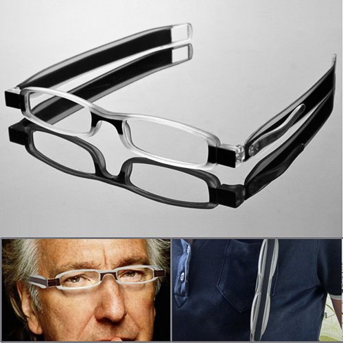 -. Title : 1 Pair Modern Design Portable Slim 360 Degree Folding Reading Glasses Eyewear with Pocket Clip Black Pouch +1.50 New