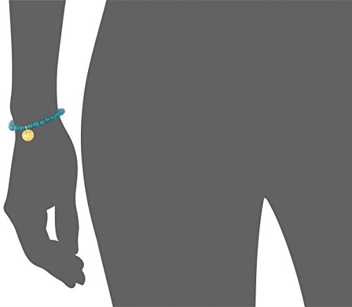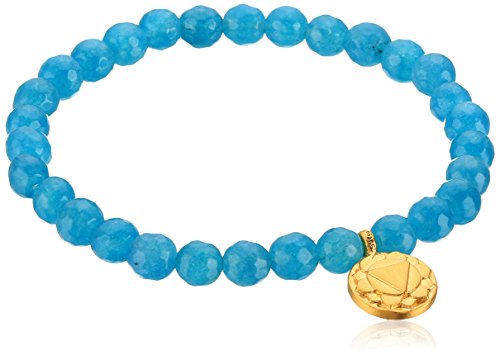 A gold 16 petal lotus dangles between light blue angelite stones for a bracelet just begging to be stacked.
