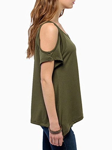 -. Title : Choies Women's Cotton Red/Green/Black Cold Shoulder V Neck Asymmetric Hem T-shirt