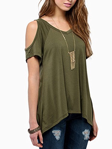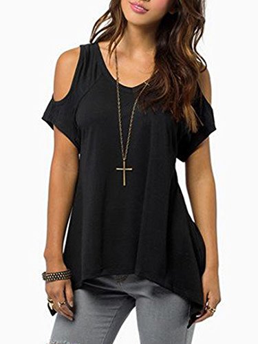 -. Feature : Asian S=US 0;Asian M=US 2;Asian L=US 4;Asian XL=US 6-8; / 65%Cotton+35%Polyester; / Sexy Cold Shoulder Design / Asymmetric Hem Design / We have registered Trademark "CHOiES"