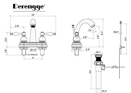 Derengge BF-8008-ORB 4" Two Handle Lavatory Faucet with Pop-up cUPC NSF AB1953 Lead Free Oil Rubbed Bronze Finished