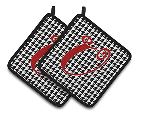 Caroline's Treasures Monogram Initial U Houndstooth black Pair of Pot Holders CJ1035-UPTHD, 7.5HX7.5W, Multicolor