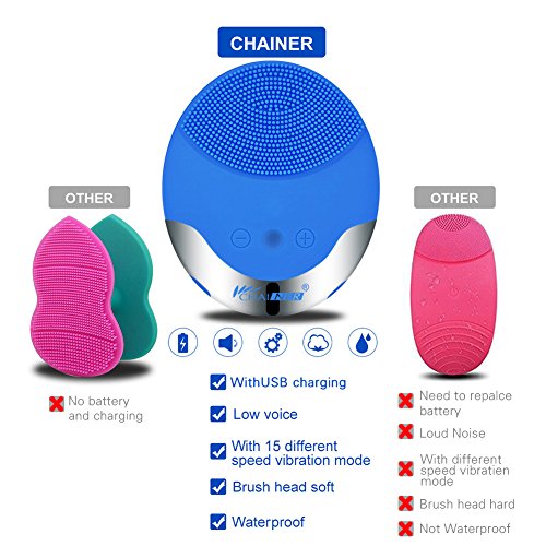 Chainer Face brush- Facial cleansing brush-Facial brush & Massager Silicon Vibrating Waterproof Facial Cleansing System with USB Rechargeable