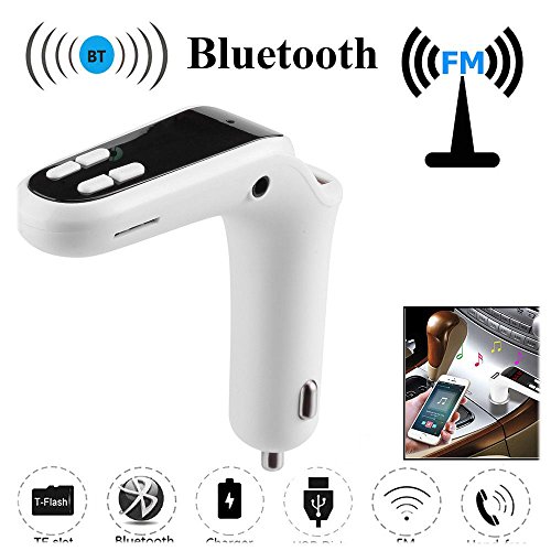 -. Feature : Fast and Intelligent Charger: This Bluetooth Car charger comes with USB output 5V/2.5A. It is able to charge devices fast. It will automatically adjust output based on the device you have / Music Player and FM Transmitter: The Car FM Transmitter is able to play the musics on your phone via FM radio or Aux-in port. It supports MP3, WMA, WAV and FLV. With TF card slot and USB port, it is also able to play and transmit music files from TF card or USB drive. / Hands Free Calling: Simply pair this car transmitter with your phone. You will be able to answer/reject/end calls easily. Hands free function lets you drive safely / Great compatibility: Compatible with all bluetooth-enabled devices, such as iPhone, Ipad, Samsung, LG, HTC smartphones, tablets / Noise Reduction Technology: With CVC technology, this car FM transmitter provides you with clear phone calling and let you enjoy beautiful music. It also supports A2DP (Advanced Audio Distribution Profile).