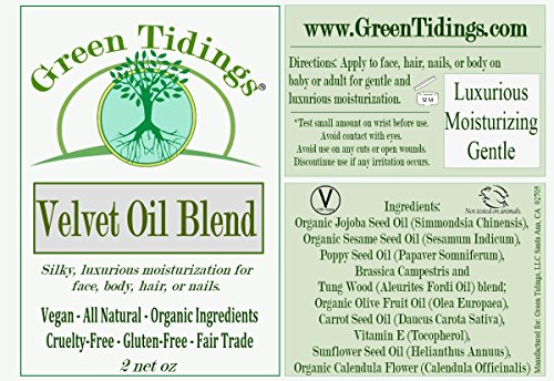 Green Tidings Velvet Oil Blend for Hair, Nails, Face, Body, Man, Woman, Baby