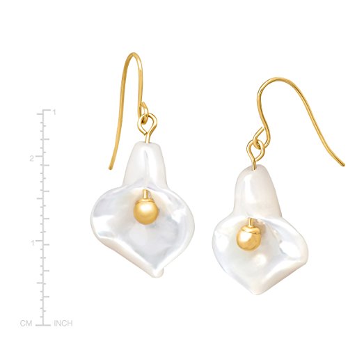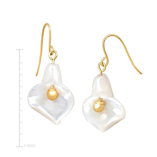 Now these earrings are the definition of flower power! Delicate calla lily shapes crafted from mother-of-pearl and polished golden beads add a touch of effortless elegance to any look, whether you're at the office, attending a cocktail party, or are anywhere in between.