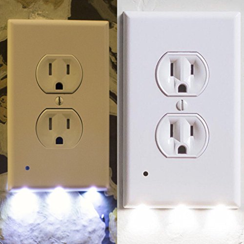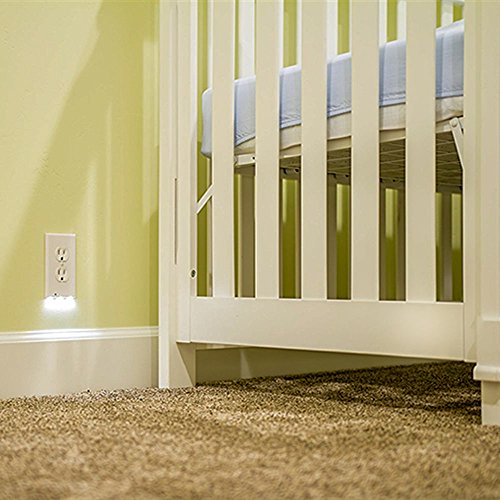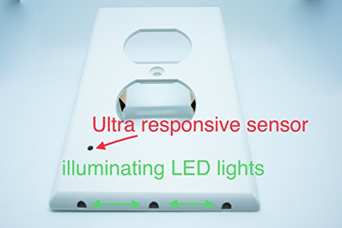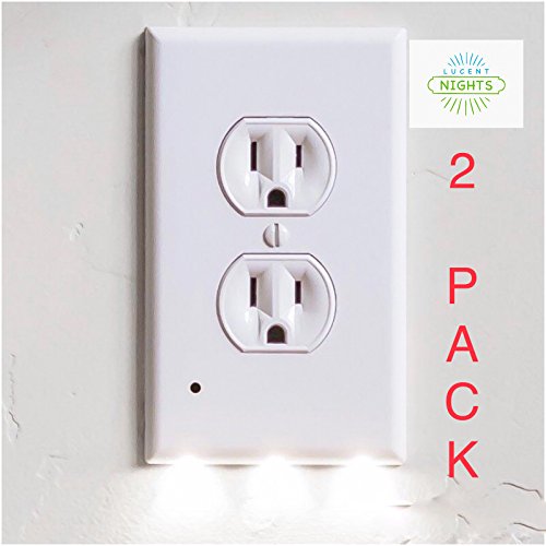 2 Pack - Outlet Cover with LED - Night Light with Sensor - No Batteries Or Wires Needed Quick Install Pleasant Lighting - Great For Kids Room Baby Nursery Hallway Kitchen and Bedroom