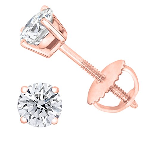 PARIKHS Near Colorless Round Diamond stud Privilege Quality in Screw Back 14K White Gold (0.06 ctw) (Color-HIJ, Clarity-VS2)