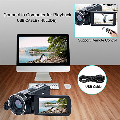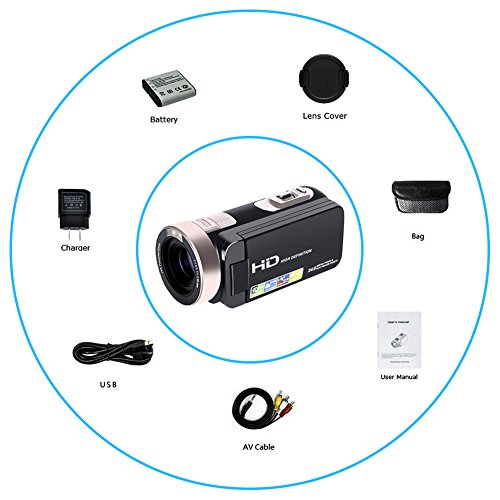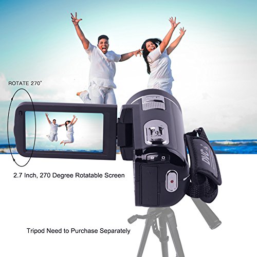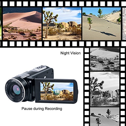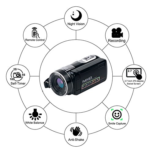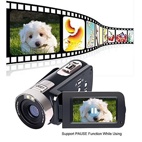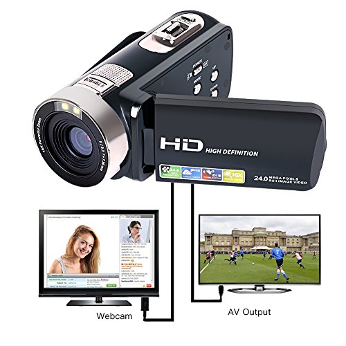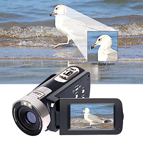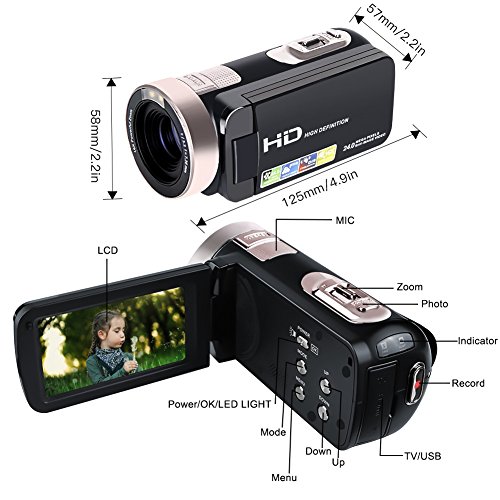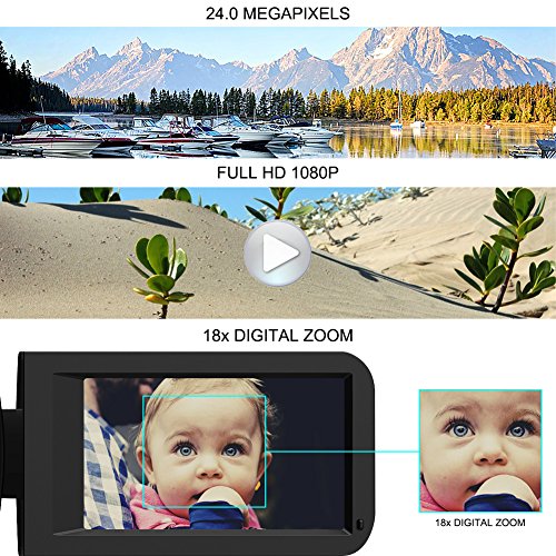 Full HD 1080p Camcorder: Dieser Camcorder unterstutzt Videoauflosungen bei Full HD 1920x1080p, 1280x720p HD und 640x480. Es kann auch Bilder mit 24,0 Megapixel aufnehmen. Es hat 2.7 TFT LCD-Bildschirm, der 270-Grad-Drehung fur Selfies unterstutzt. Dieser Camcorder verfugt uber einen 18-fachen digitalen Zoom, mit dem Sie Ihre Bilder vergrossern konnen.