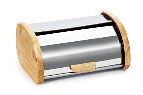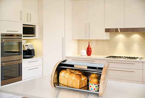 Perlli Stainless Steel - Wood Rolltop Bread Box - Compact Design 13x9x7