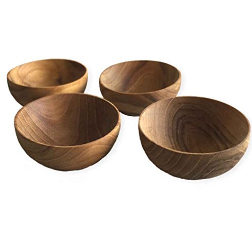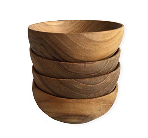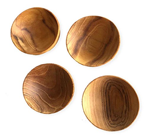 Product Description Perfect for individual seasonings on the table or serving soy sauce for sushi this set of 4 miniature round teak bowls are the perfect wooden accent to any table. They are handcrafted from teak by artisans from small communities or local villages in Southeast Asia. Dimensions: Each bowl measures 2.5" Dia. x 1" H 0
