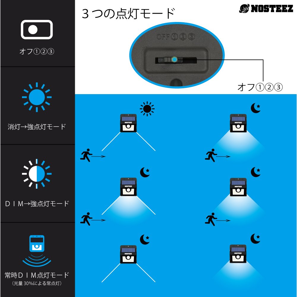Steady lighting mode: Solar light continues to dim light when the surroundings become dark or there is no movement in the night.