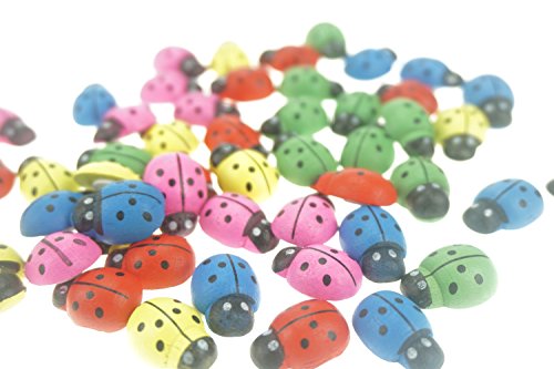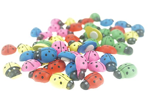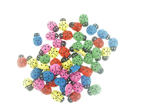 Bilipala 50pcs 3D Ladybugs, Mini Wooden Stickers for Table and Wall Decor, Multicolor