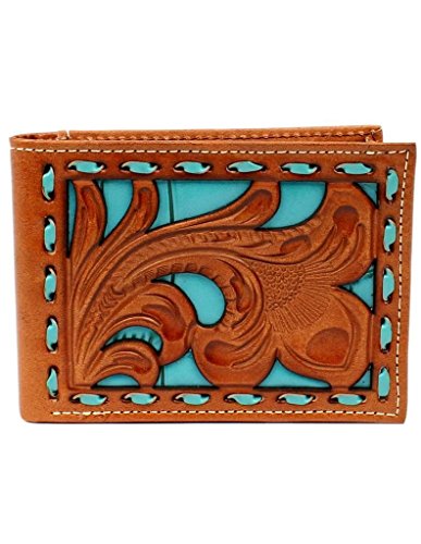 Studio : Nocona Publisher : Nocona Product Description Mens Nocona Wallet: Mens Nocona Western Wallet. This men's Nocona leather bifold wallet with removable pass case by MF Western Products features a tan floral embossed piercing with turquoise underlay. The edges have a matching turquoise buck lacing, and white contrast stitching. Inside features a clear ID slot, credit card slots, removable photo slip, and money slot. This quality wallet will keep your money safe and in style. N5418133 0