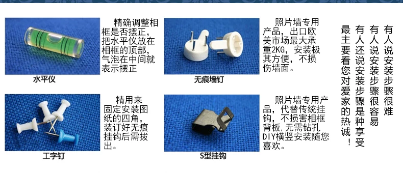| 包含安装配件 | 无痕钉11个,挂钩11个,水平仪一个,(全套配件,即刻安装) | ||